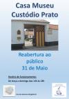 A Casa Museu Custódio Prato reabre ao público no próximo dia 31 de maio (domingo), após o encerramento temporário em contexto do estado de emergência e contingência devido à pandemia do Covid-19.